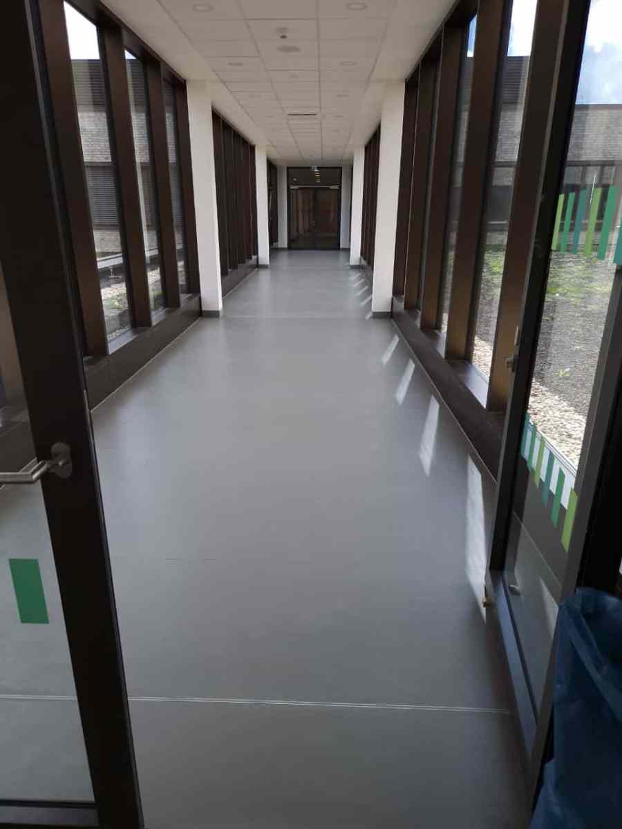Unser Team hat in der gesamten Schule einen robusten Kautschukboden verlegt, der besonders für den täglichen Gebrauch in stark frequentierten Räumen geeignet ist. Der verwendete Kautschukboden besticht durch seine hohe Strapazierfähigkeit, Rutschfestigkeit und einfache Pflege. Mit seiner angenehmen Haptik und modernen Optik in neutralen Farbtönen unterstützt der Boden das freundliche und lernfördernde Ambiente der Schulräume.
